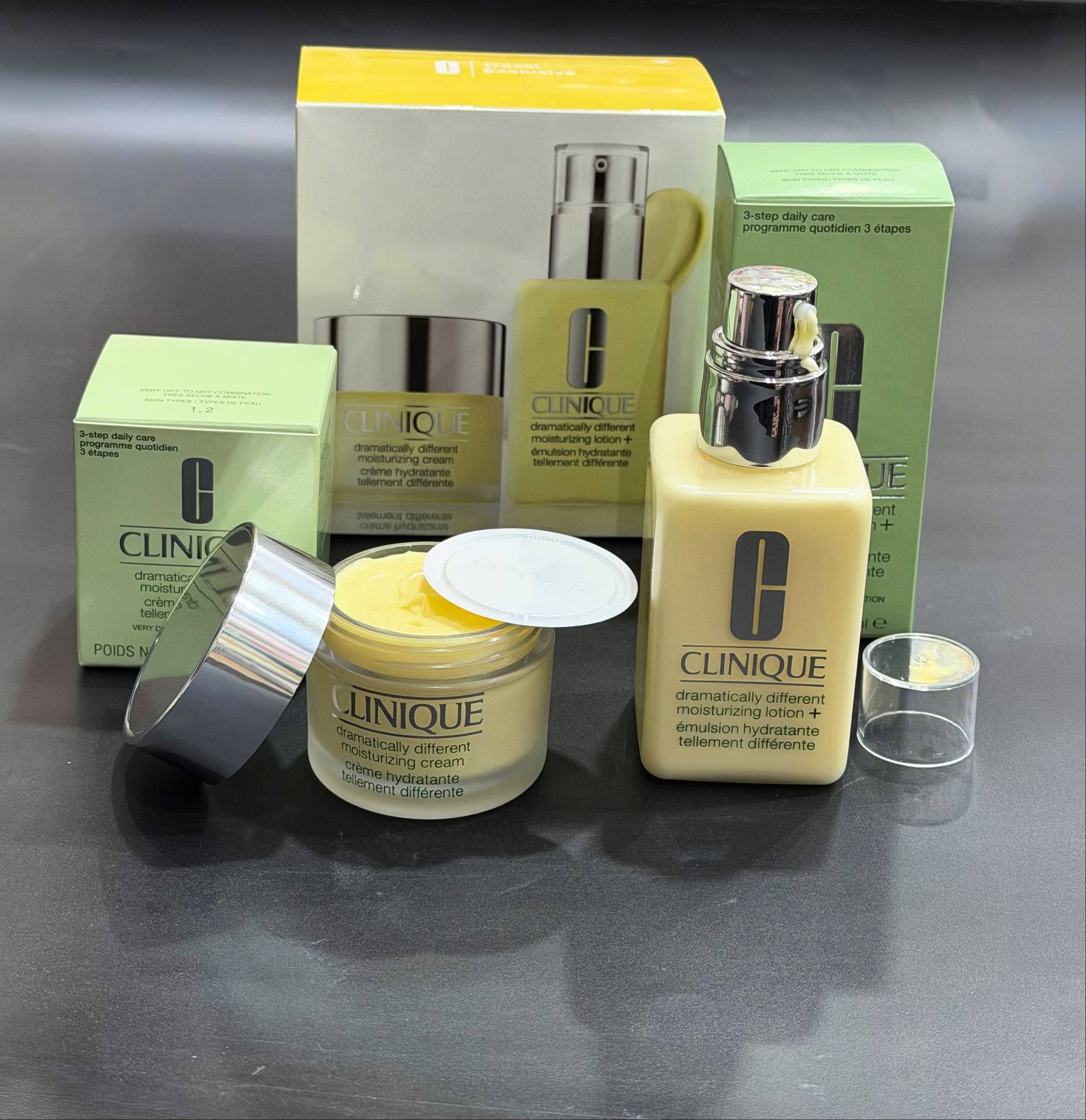 ست دو قلو آبرسان و مرطوب کننده پوست خشک و حساس کلینیک dramatically Rich lotion & moisturizing cream ۱- کرم کاسه ای دراماتیکالی کلینیک آبرسان ابریشمی با غلظت و غنی شده ۲-لویسیون پمپی دراماتیکالی کلینیک مرطوب کننده روزانه متفاوت پوست ♻️بافت کرمی نرم با جذب مناسب ♻️بدون ایجاد حس چربی ♻️تقوبت کننده سد رطوبتی ♻️افزایش استحکام پوست ♻️افزایش چشمگیر انعطاف پذیری وارتجاعی پوست ♻️کاهش عمق خطوط ناشی از کم آبی ♻️ترمیم پایدار سد دفاعی پوست ♻️پوست مقاوم در برابر تغیرات محیطی ♻️مخصوص پوست های خشک و خیلی خشک ♻️پوست های حساس و تحریک پذیر حجم 150ml + 50ml
