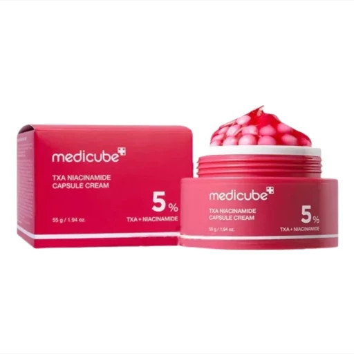 TXA Niacinamide Capsule Cream از برند Medicube، یک کرم کپسولی چندکاره است که با فرمولاسیونی نوآورانه برای روشنشدن پوست، محو لکها و تأمین رطوبت طراحی شده. این محصول ترکیبی از مواد مؤثر بالینی مانند اسید ترانکزامیک (TXA)، نیاسینامید، آلفا آربوتین، گلوتاتیون و هیالورونیکاسید را در خود جای داده است .