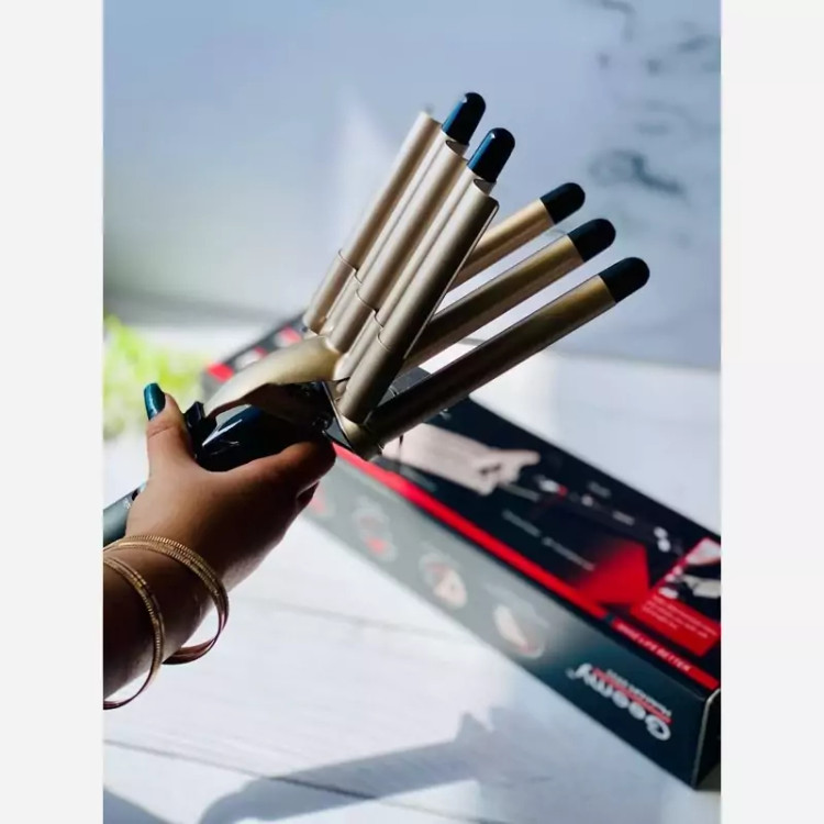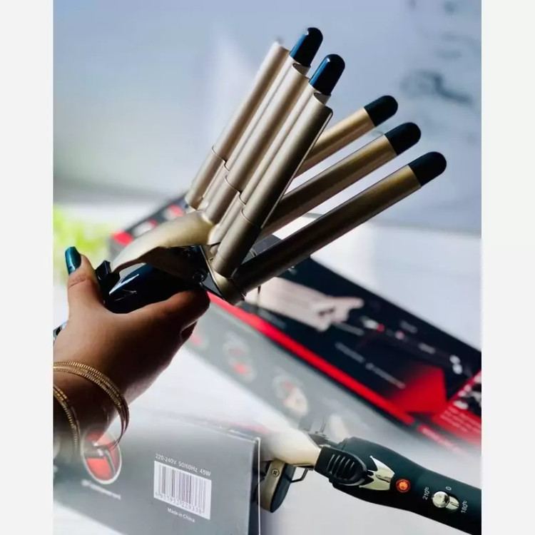 فر S یا فر عربی جیمی 💫باکیفیترین فر s بازار 💫5شاخه(کلیهی میلهها المنت مجزا) 💫بازهی دمایی 180 تا 210 درجه سانتیگراد 💫جنس میلهها روکش تیتانیوم 💫سیم چرخش 360 درجه 💫مناسب استفادهی سالنی و خانگی حالت دهندگی سریع 💫مناسب کرلی کردن ، حجم دادن و موج دار کردن مو