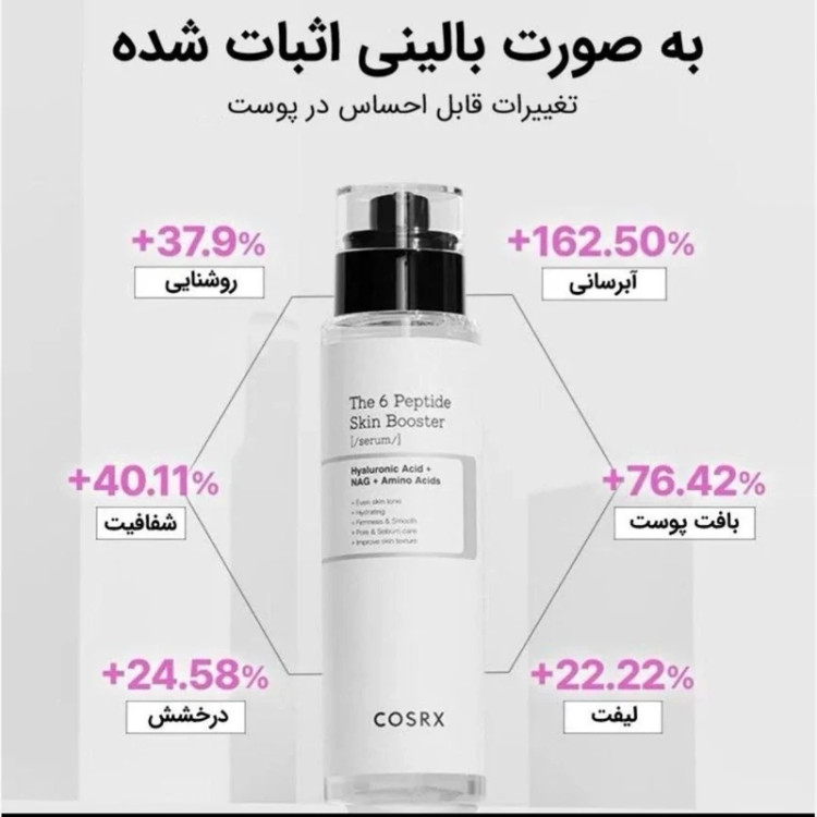 سرم تقویت کننده پپتاید کوزارکس حاوی شش نوع پپتاید، آمینو اسید و هیالورونیک اسید جوانساز پوست از بین برنده چین و چروک پوست جلوگیری از پیری زودرس پوست آبرسان عمیق پوست شفاف و درخشان کننده پوست سفت کننده پوست کنترل کننده چربی پوست کوچک کننده منافذ برند COSRX 150 میل ساخت کره
