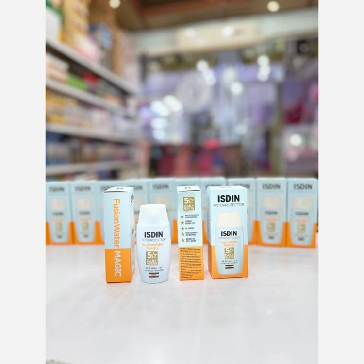 ⬜️ ضد آفتاب فلوئیدی فیوژن واتر مجیک بی رنگ ایزدین SPF50 ISDIN FOTOPROTECTION FUSIONWATER MAGIC SUN FLOUID SPF50 50 ML حاوی هیالورونیک اسید جهت تامین آبرسانی شدید تا 12 ساعت • دارای عملکرد آنتی اکسیدانی بالا • حاوی عصاره جلبک مدیترانه ای و ویتامین E جهت محافظت از آسیب رادیکال های آزاد • بافت فوق سبک با جذب بالا • قابل استفاده روی پوست خیس • بدون ایجاد سوزش برای چشم • کاملا بی رنگ و بدون ایجاد رد سفیدی روی پوست • تست حساسیت و کلینیکی انجام شده • کاملا هایپوآلرژنیک • بدون ایجاد چربی روی پوست • فاقد چربی و روغن های معدنی • غیر جوش زا • کنترل کننده ترشح چربی پوست • مات کننده پوست • مناسب انواع پوست • مناسب حتی پوست های آتوپیک و حساس اورجینال 🟩
