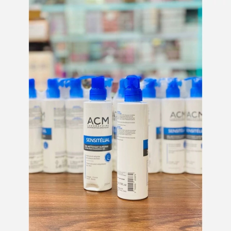 ژل شوینده سن سی تلیال ای سی ام ACM پاک کننده روزانه مناسب پوست های خشک، آتوپیک و حساس (کودکان و بزرگسالان) برطرف کننده کشش سطحی پوست در اثر شستشو PH فیزیولوژیک پوست بازسازی کننده غشاء هیدرولیپیدیک خاصیت ضد التهاب و التیام بخش قابل استفاده برای صورت و بدن فاقد عطر غنی از ترکیبات آبرسان برای پوست های خشک و اگزمایی و آتوپیک دارای عوامل التیام بخش برطرف کننده کشش سطحی و خارش پوست محصول کشور فرانسه حجم 200 میل
