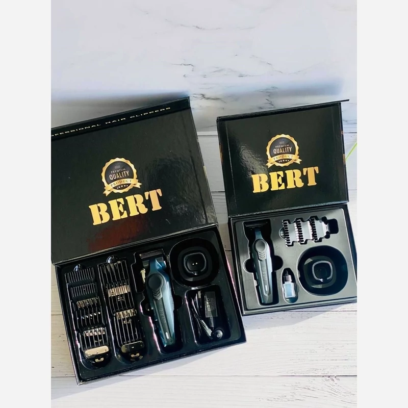 ماشین اصلاح برت(BERT) 👈برند امریکا 👈تیغههای کربن(DLC) 👈شارژی و برقی 👈زمان فول شارژ: 210 دقیقه 👈زمان کار بیسیم: 210 دقیقه 👈باتریهای لیتیوم واقعی 👈دور موتور: 8000 دور در دقیقه 👈دارای 8 عدد شماره شانه و پایهی فلزی شانهها 👈استند زیبا و کاربردی مخصوص دستگاه 👈کابل و ادابتور مخصوص همراه دستگاه 👈مناسب اصلاح حرفهای در سالن و استفاده خانگی 👈جعبه کادویی و مستحکم و شکیل