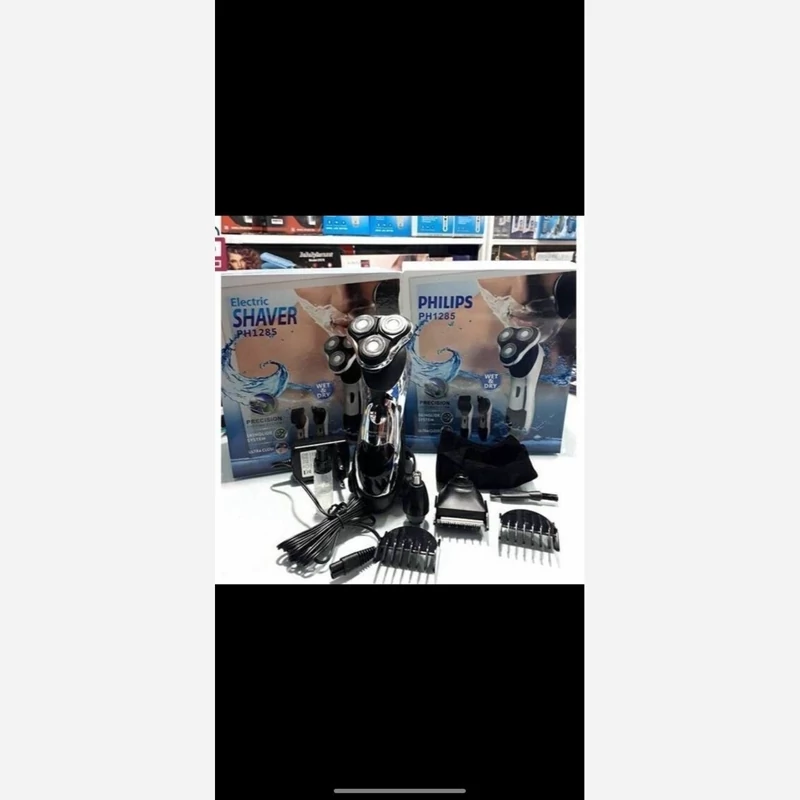سه تیغ یا ریشتراش فیلیپس مدل:PH1285 برند هلند کاملا ضد اب و زیر دوشی سه کله ی مجزا(1-صفرزن2-خطزن3-موزن گوش و بینی) دارای 3 عدد شماره شانه برای کله ی خطزن جهت کوتاه کردن خط ریش ، ابرو ، سبیل صفحه نمایش دیجیتالی محصول هم شارژی هم برقی باتری لیتیوم مدت زمان شارژ شدن: 1ساعت و نیم مدت زمان کار دستگاه: 1 ساعت دارای پایه شارژ جهت سهولت در شارژ شدن قفل کودک دیجیتالی دارای فرچه ی تمیز کننده و روغن روان کننده برای کله ی خطزن جعبه ی کادویی و اهنربایی و مدل جدید محصول تضمینی و قابلیت صفرزنی همانند تیغ